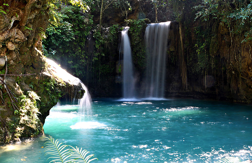 Am Panagsama Beach (der komplett zugebaut ist, „Beach“ ist da nicht mehr viel) findet man den berühmten Sardine Run. Es halten sich dort ganzjährig gigantische Massen an Sardinen auf und es war wirklich beeindruckend, durch die Schwärme zu tauchen. Das Erlebnis wurde allerdings etwas von ein- und ausfahrenden Booten getrübt, die dort wenig Rücksicht auf Leute im Wasser nehmen. Auf Empfehlung wollten wir auch einige Tage mit Freediving Planet Moalboal trainieren. Leider hatten wir ziemliches Pech – unsere erste Trainingssession ging dank starker Strömung so in die Hose, dass wir danach keine Lust mehr hatten. Im Allgemeinen hatten wir aber etwas andere Vorstellungen und haben uns deshalb dort einfach nicht so wohl gefühlt. Neben der Unterwasserwelt in Moalboal lohnt es sich, die Wasserfälle im Süden Cebus zu erkunden. Ein Wasserfall ist schöner als der andere und es zahlt sich aus, früh dort zu sein, um die Wasserfälle für sich allein zu haben.