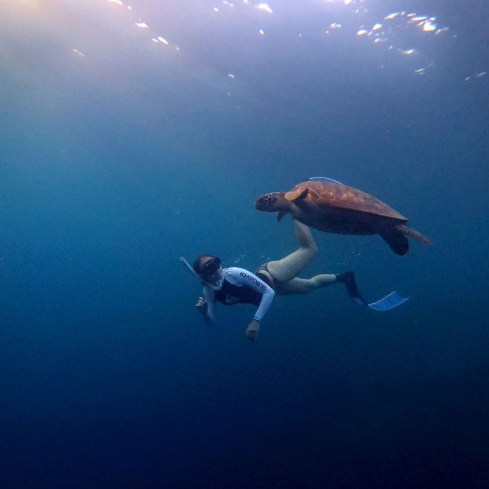 Von Busuanga ging es mit dem Flieger weiter nach Cebu und von dort direkt nach Moalboal. Im Gegensatz zu den meisten Touristen übernachteten wir nicht am Hotspot Panagsama Beach, sondern etwas außerhalb, wo es ruhiger war und wir einen Bungalow direkt am Meer hatten. Von hier aus konnte man direkt ins Meer hüpfen und war regelrecht umringt von erstaunlich zutraulichen Schildkröten. Die Schildkröten und die Unterwasserwelt waren wohl auch der Grund, warum wir ganze acht Tage blieben. Es war echt schwer, uns hier wieder aus dem Wasser zu bekommen.
