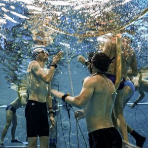 Was gibt es sonst aus dem Wasser zu berichten? Insgesamt konnten alle ihre Tauchgänge recht individuell gestalten. Ein paar feilten mit Matthias an ihrer Technik; einige feierten Touchdowns und Personal Bests; wieder andere übten Bubble Rings oder lieferten sich ein Bi-Fins-Rennen. Und Robert hat endlich seine geheime Identität preisgegeben (nach seinen letzten Trainingsleistungen hatten das schon einige vermutet) und ist in seinem Cape durch die Mondlandschaft geflogen.