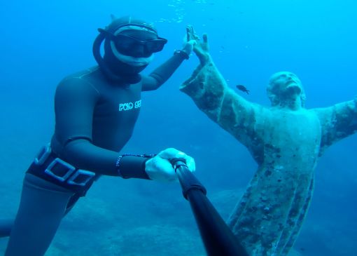 Besuch der Statue am Meeresgrund in der Bucht von San Fruttoso