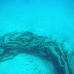 Das Highlight meines Urlaubs war der Ausflug zum Museo Atlantico in der Nähe der Papagayo Strände. Der Künstler Jason deCaires Taylor hat hier auf einer Tiefe zwischen 12-15 m mehrere Zementskulpturen versenkt, die gemeinsam ein großes, künstliches Riff bilden. Insgesamt findet man hier auf einer Fläche von 50 x 50 m ca. 10 Installationen.