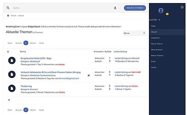 Nach dem Klick auf das Forum landet man auf der Seite „Aktuell“ mit neuesten Beiträgen. Hier werden nur letzte Beiträge und die zur Zeit am häufigsten genutzten Kategorien veröffentlicht.