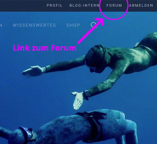 Nach dem Login erscheint am oberen Bildschirmrand das „interne Menu“ mit einem Link zum Forum.